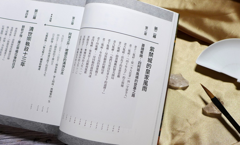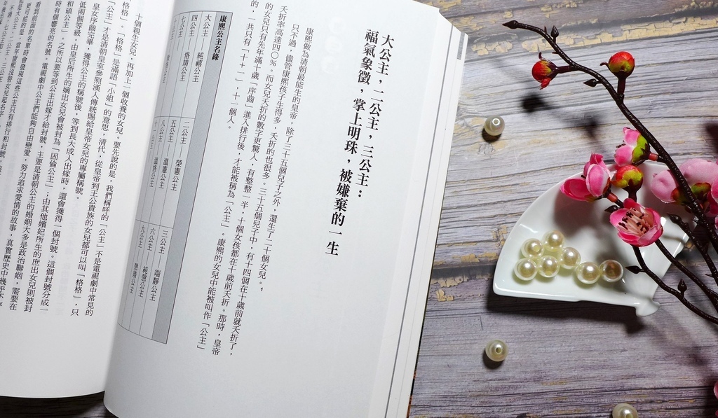 事實上,康熙的二十個女兒中,僅有九位僥倖活到長大成人出嫁。在重男輕女的年代,她們只有排行和封號,沒有名字,也許是史冊未載,也可能是當初沒起名字。書中細寫每位公主或平靜順遂、或悲苦孤寡之生命故事,女性沒有自主權的波折一生,是《何以為雍正?》最令我動容的章節,謝謝作者把她們寫出來,而非淹沒於文字記載寥寥無幾的歷史長河中。