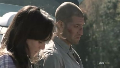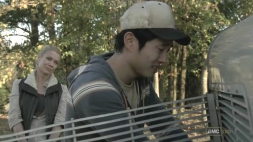 那廂Andrea狩獵之際,這廂Lori親眼目睹Dale枉死,深感一夫一妻制實在不可靠,有道是「留著備胎在,不怕沒柴燒」,所以跑去對Shane搧風點火,淚眼婆娑傾訴當初兩人共聚的歡樂時光,感謝Shane為她做過的一切,最後還暗示「我們之間...是有點什麼的...」。Shane目瞪口呆地望著Lori飄然遠去,內心頓時燃起一線希望。