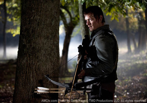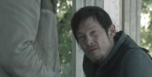 Daryl疑惑問T-Dog:「我的槍去哪了?」。不要再管槍了,匪諜就在你身邊啊保住十字弓先!